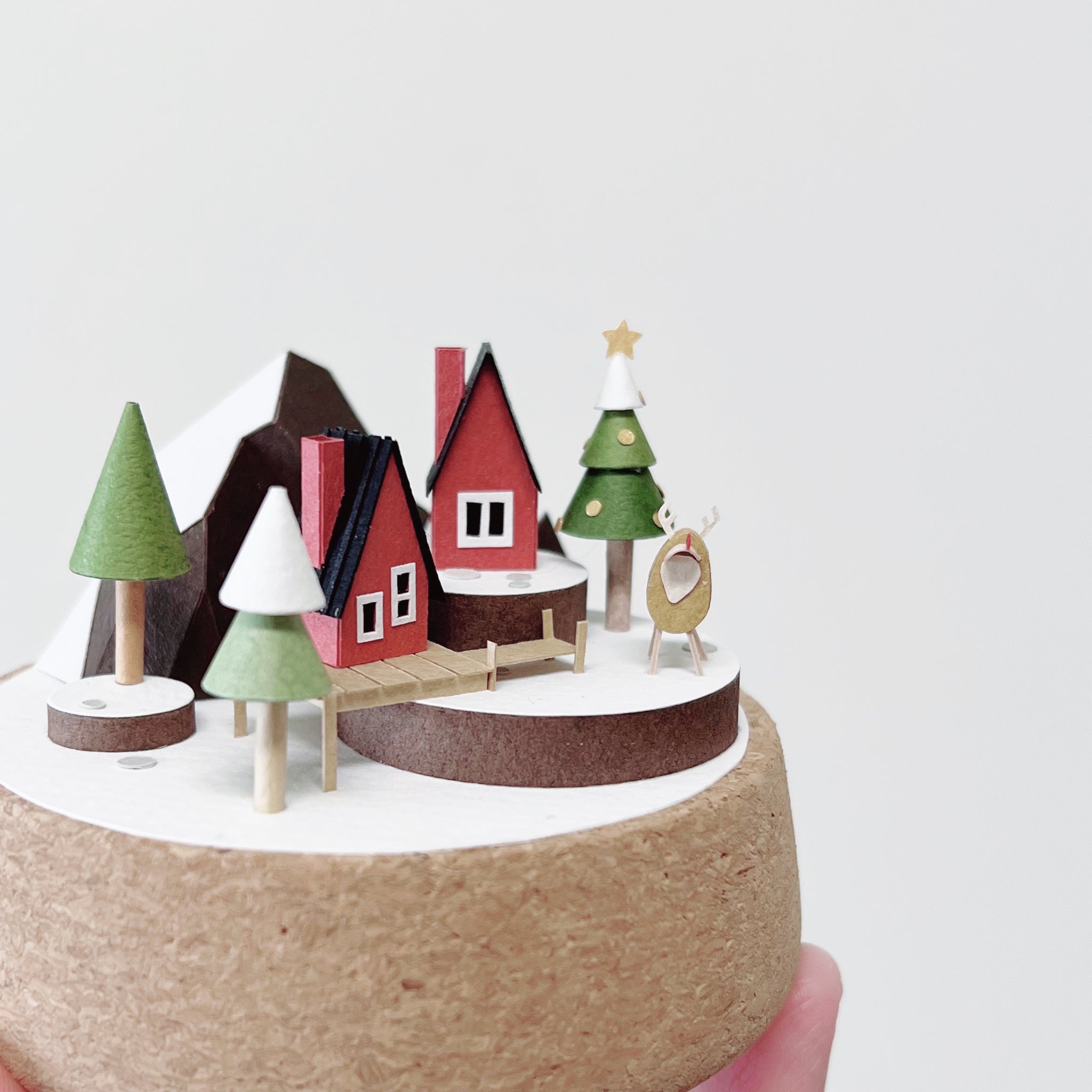 Winter Nordic Village ✷ 冬日北歐村莊 ✷ 在群山環抱的小村落裡,有著可愛的聖誕樹以及紅鼻子魯道夫。 紅牆黑屋頂視作經典的北歐小木屋配色~ 不知道房子裡住著的人是誰? ❒ 因為手工製作都是獨一無二,請理解收到的作品與照片不是一模一樣喔~//像是松樹和房屋的位置、小屋的窗戶形式等等// // 有透明玻璃罩保護,防塵防濕氣。// 尺寸請參考下圖...