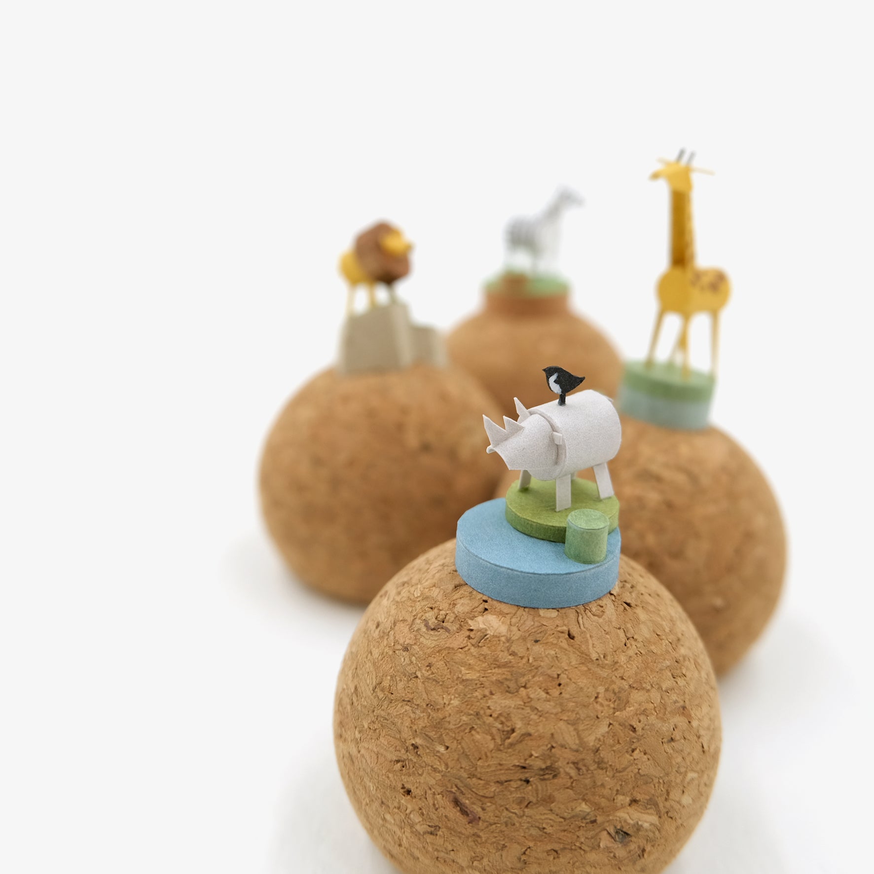 這隻長頸鹿擁有超長的脖子,優雅地佇立在小丘上,彷彿能輕易地窺探遠方的世界。牠身上的斑點都是手工繪製的,因此每一隻都擁有獨一無二的花紋,就像大自然中沒有兩隻完全相同的長頸鹿一樣。