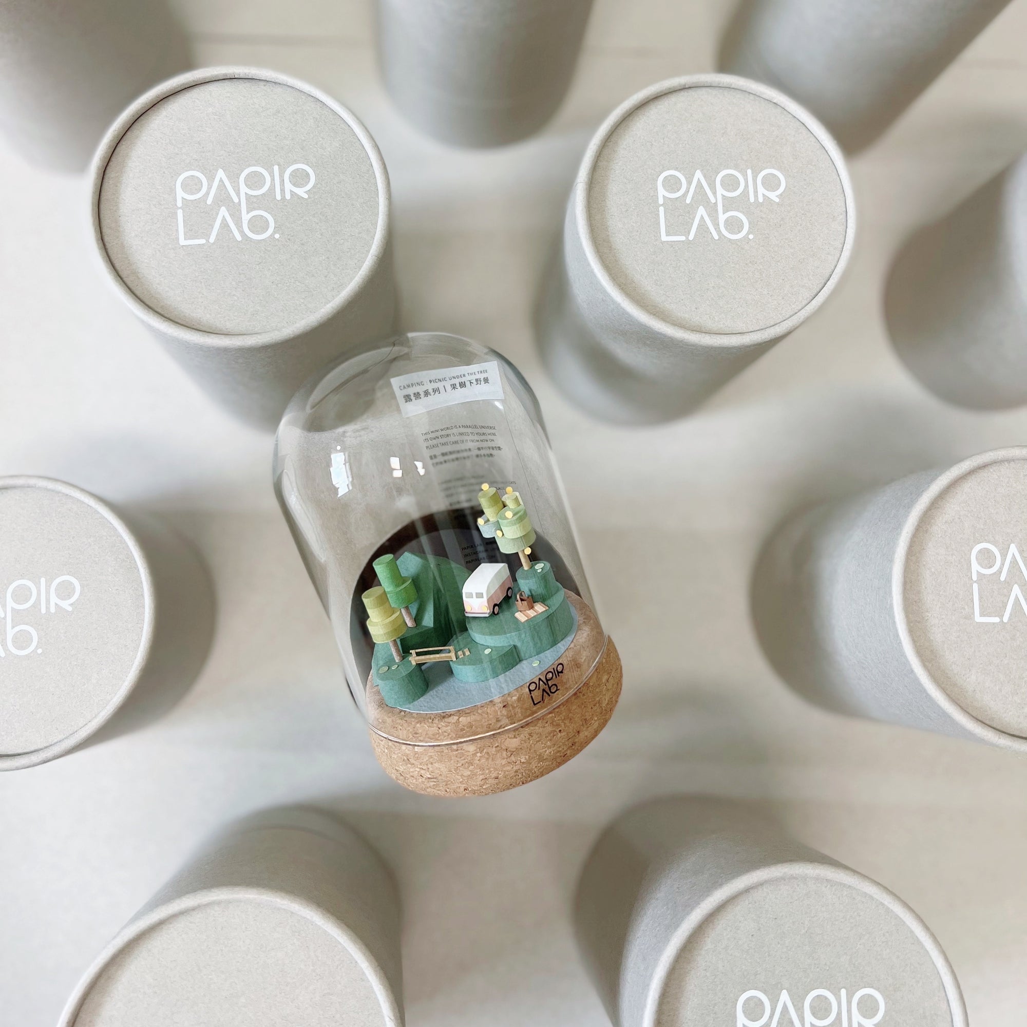 ❒ 每座小世界都是獨一無二的手製紙地景。