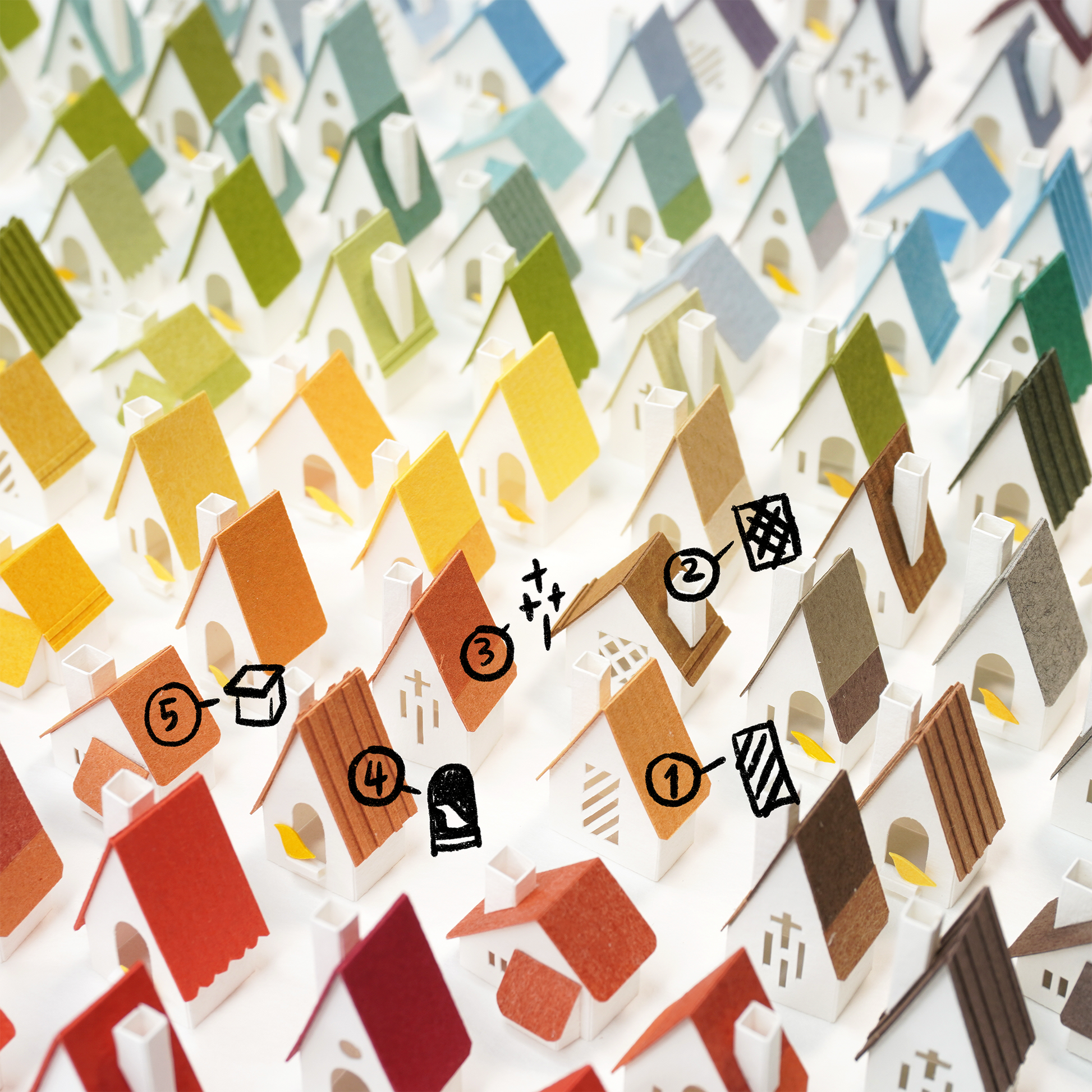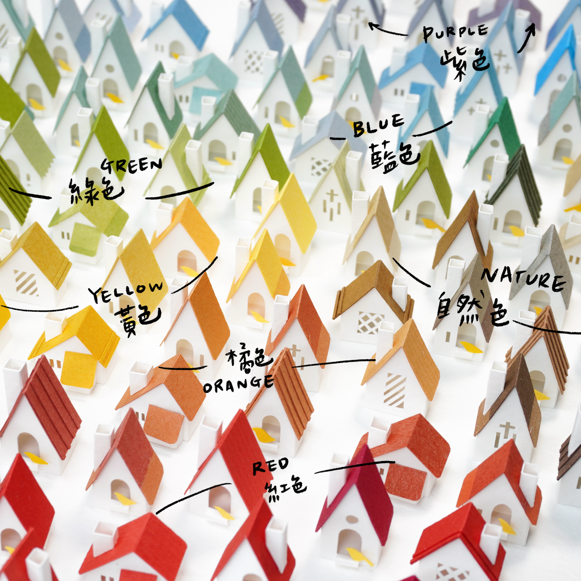 山丘的顏色會影響到整體的風格,可以沈穩安靜或是活潑繽紛。也能參考紙間其他作品的照片。
