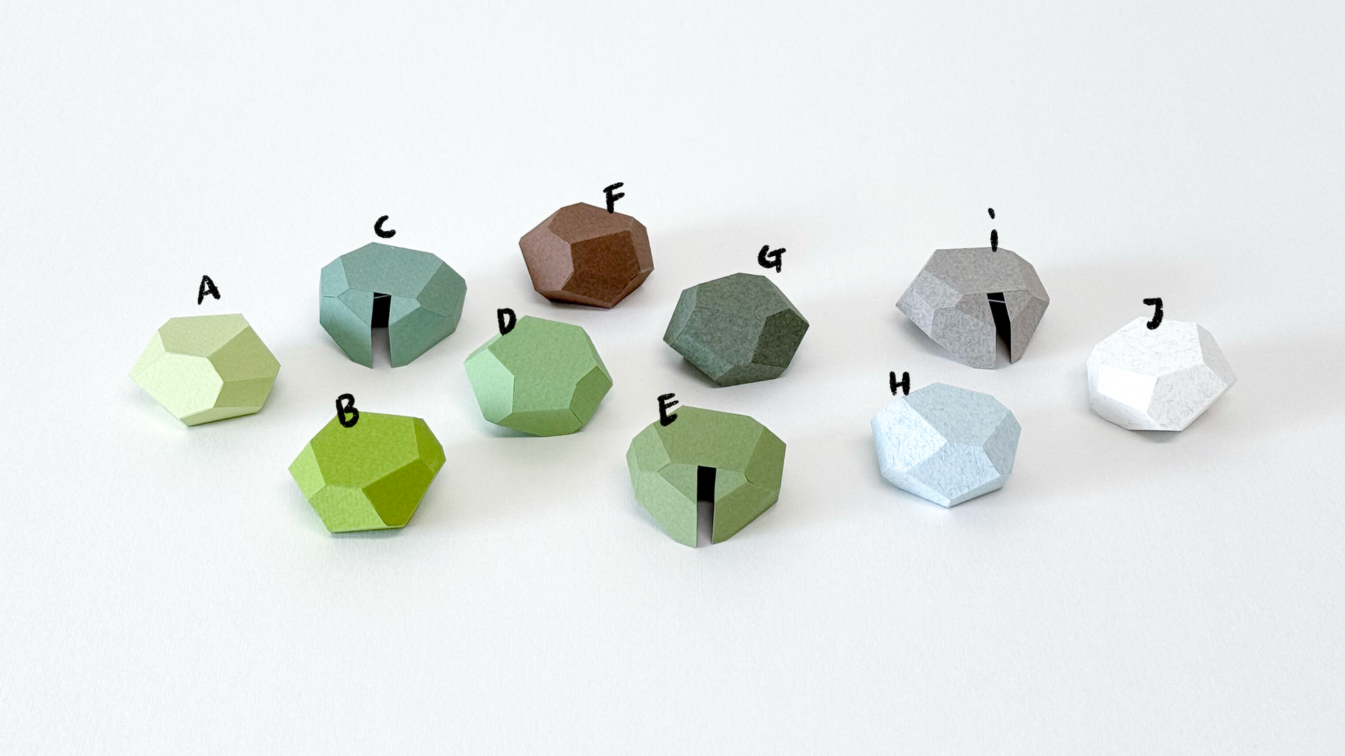 F:深褐色 G:深綠色 H:淺藍灰 I:雜點灰 J:雜點白