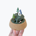每座都是獨立的一個小小平行宇宙!有兩棵小樹與一棟小房子在山坡上靜靜的待著,每個迷你地景的搭配都獨一無二、顏色繽紛、四季變換。
